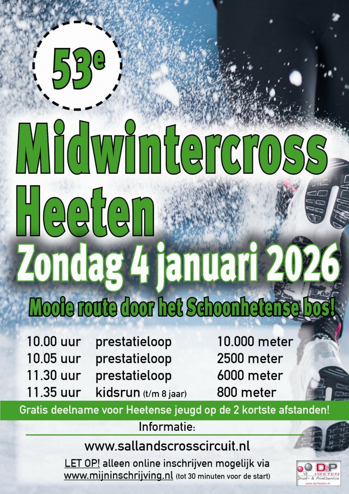 Kortom: trek je hardloopschoenen aan, trotseer de winter en start 2026 sportief bij de Midwintercross Heeten!