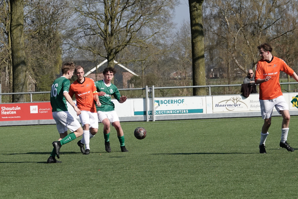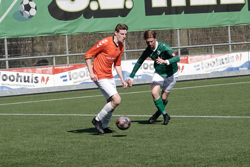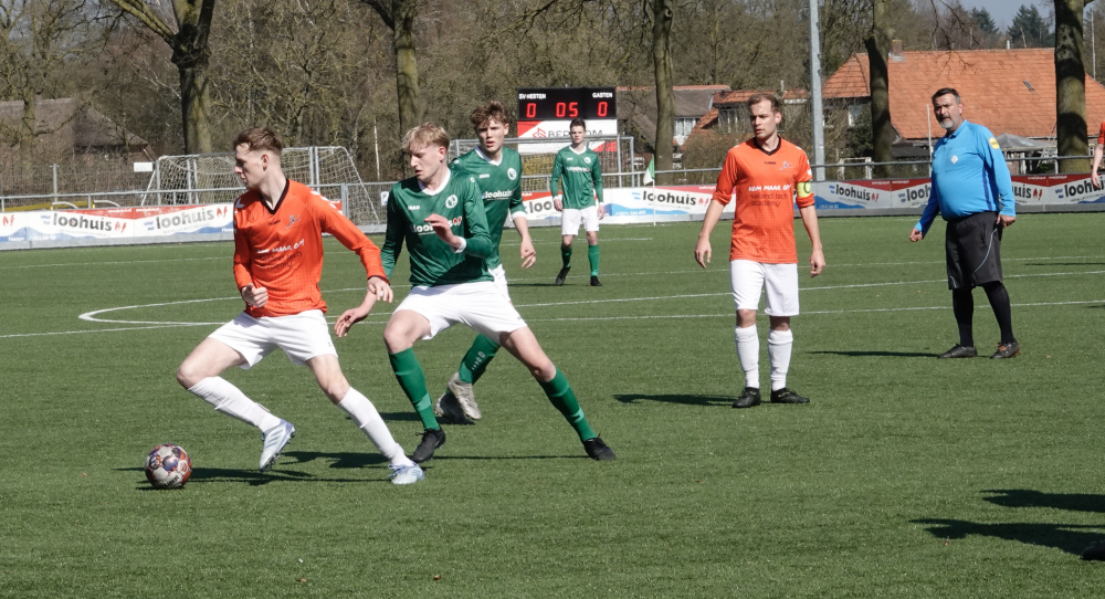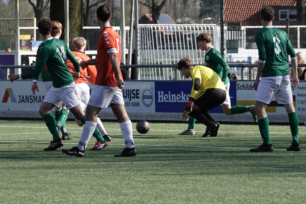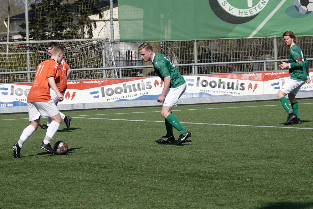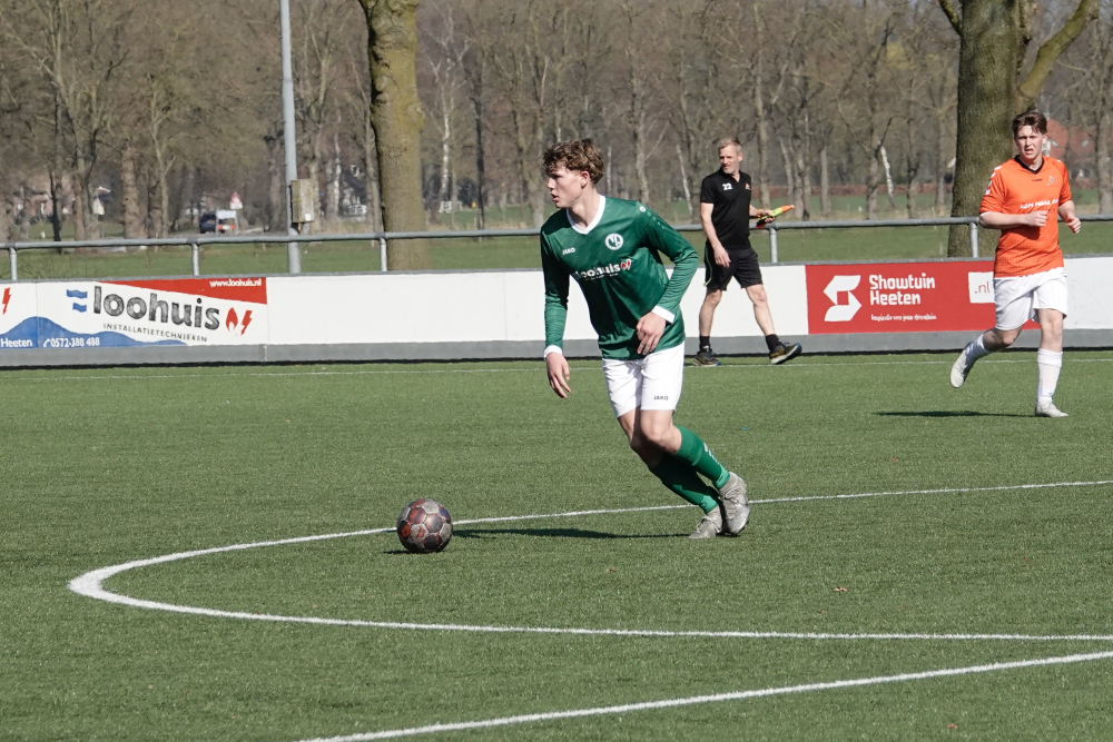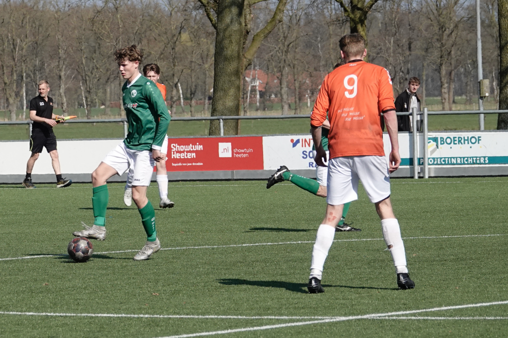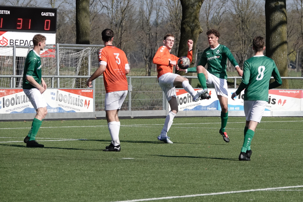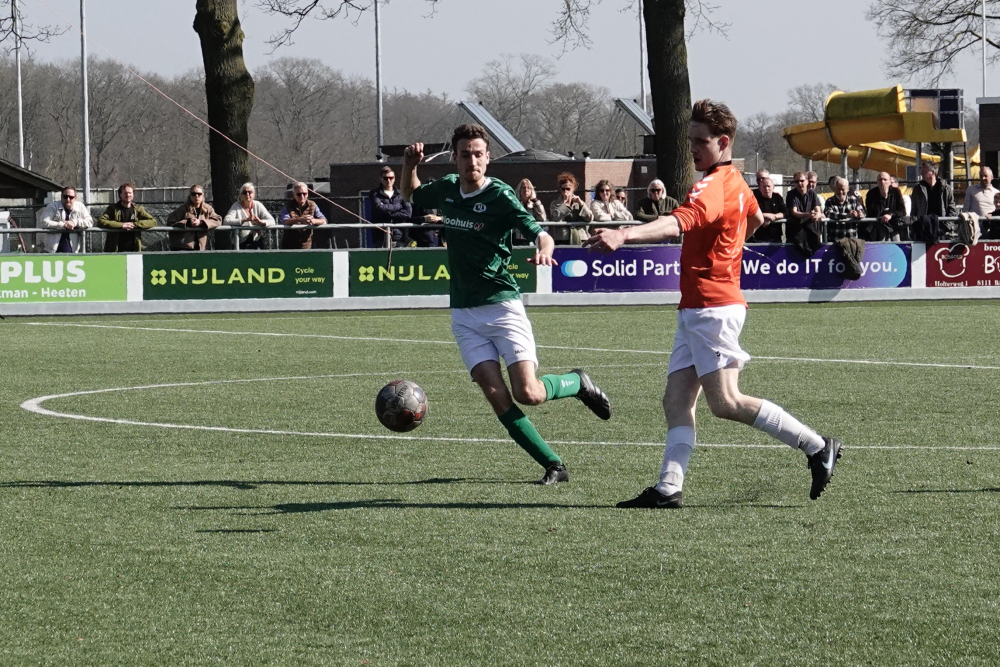 Ook daarna bleef Heeten de bovenliggende partij, al leidde dat niet direct tot grote kansen. Broekland liet zich na 33 minuten voor het eerst zien, maar doelman Ruben Salden redde knap. Kort daarna was Oosterlaar dicht bij zijn tweede treffer, maar de keeper voorkwam een grotere achterstand. Met een 1-0 voorsprong ging Heeten de rust in.