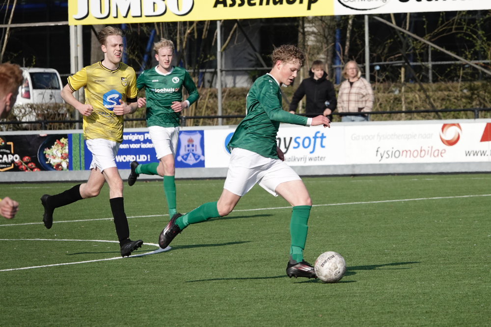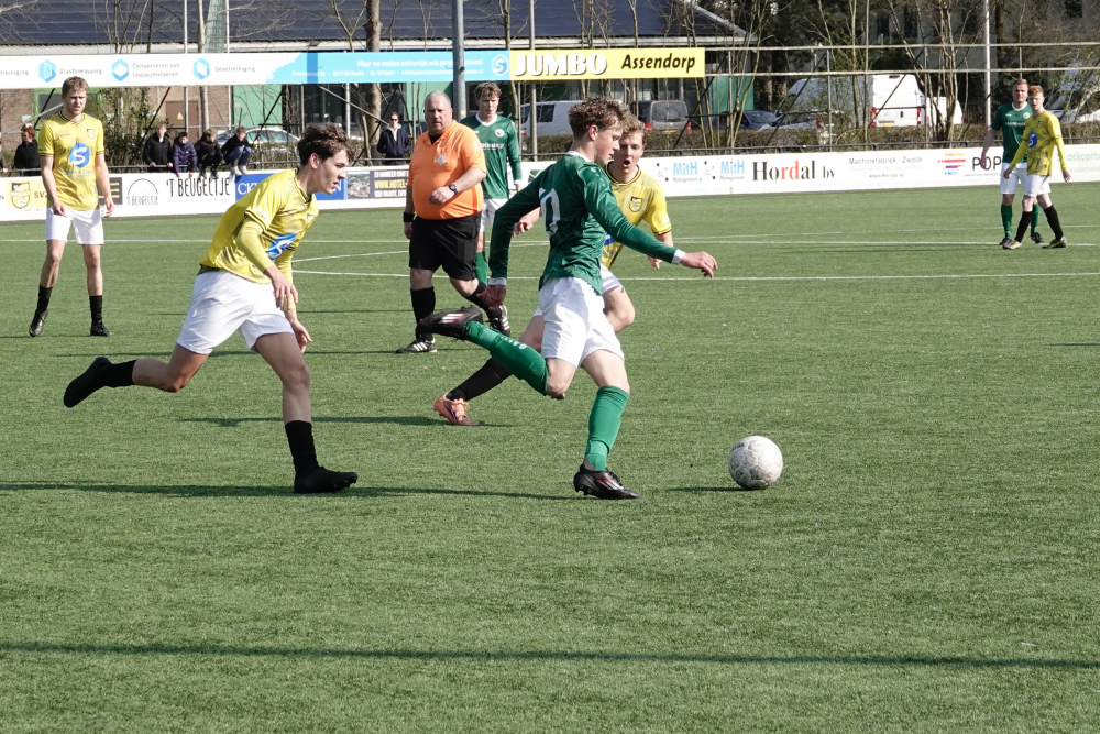 Niet veel later kwam Heeten alsnog op voorsprong. Jelle Reimert stoomde op over de linkerflank en gaf een voorzet die door Dylano Meijerink werd verlengd naar zijn broer Boy. Die rondde beheerst af: 0-1. Heeten bleef daarna de betere ploeg en verdubbelde verdiend de voorsprong toen Boy Meijerink van zo’n achttien meter raak schoot: 0-2.