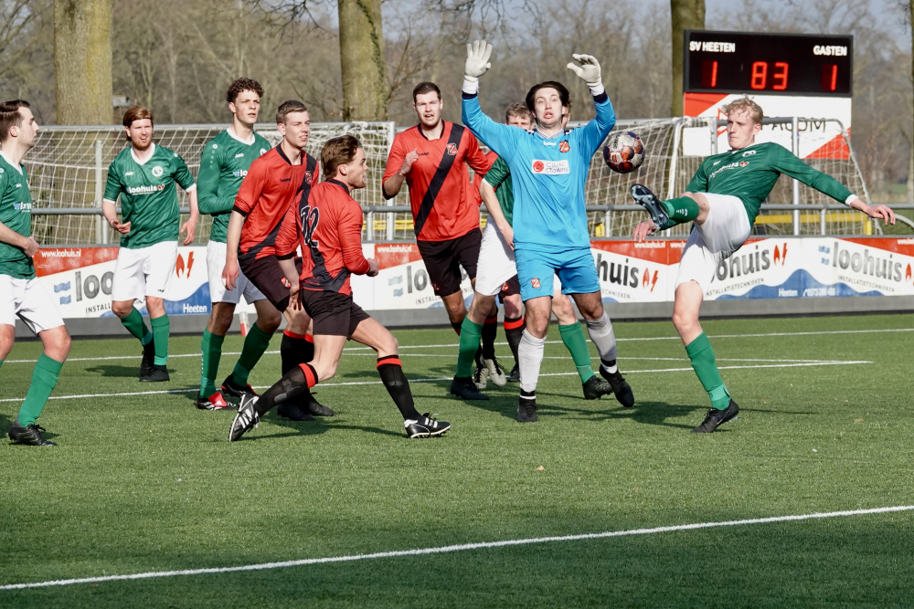 Holten probeerde in de slotfase nog de gelijkmaker te forceren, maar verder dan een afgekeurd doelpunt wegens duwen en een serie hoekschoppen kwam het niet. Daarmee trok Heeten opnieuw in de slotfase de overwinning naar zich toe.